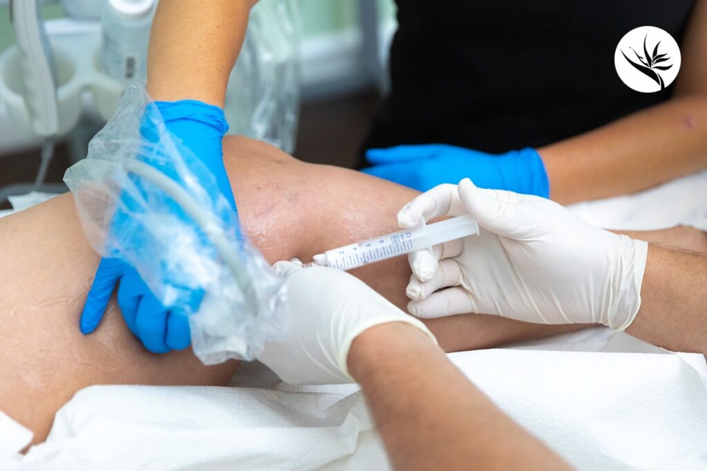 We do not require numbing for treatment, but if it makes you more comfortable with the injection process, we can apply it. Once you feel situated and ready, we use ultrasound guidance to locate the vein and inject Varithena into targeted areas along the vein.
